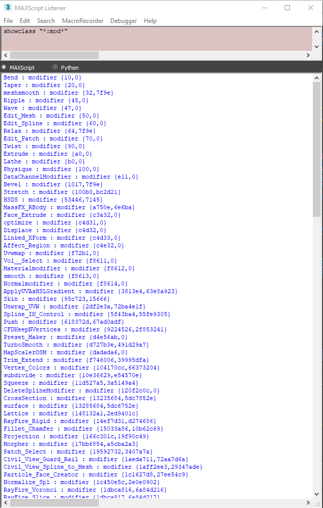 I asked if somwhere is list that compare blender modifier to max modifier. . Or is there a way of opening one of max's files that stores the modifier list, to copy and paste them in text format.