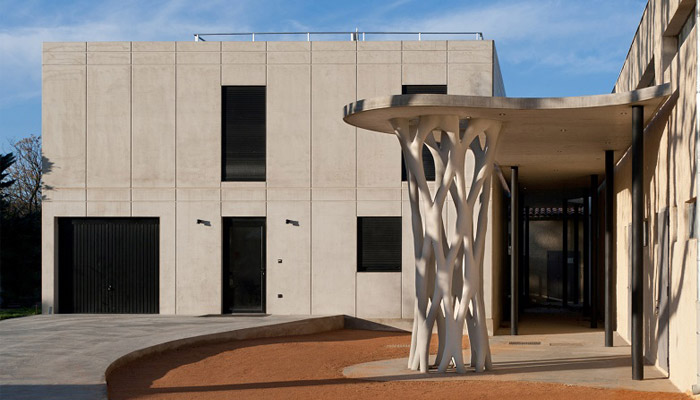 It will also allow for more design freedom and free shapes. En robotarm bevæger sig frem og tilbage over et område, mens den sprøjter beton ud ifølge det mønster, som arkitekttegningen dikterer. En robotarm bevæger sig frem og tilbage over et område, mens den sprøjter beton ud ifølge det mønster, som arkitekttegningen dikterer.